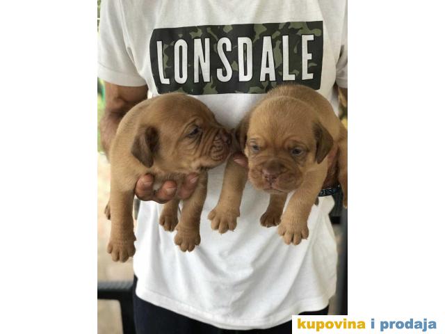 Stenci Bordoska doge vrhunske krvne linije na prodaju ostenjeni 29.08.2023 . Dostupno 3 muzijaka i 4 ženke. Stenci su očišćeni od parazita vakcinisani i revakcinisani jakog kostura i snazne glave sa svim potrebnim papirima stenci su dostupni od 15 oktobra 2023.