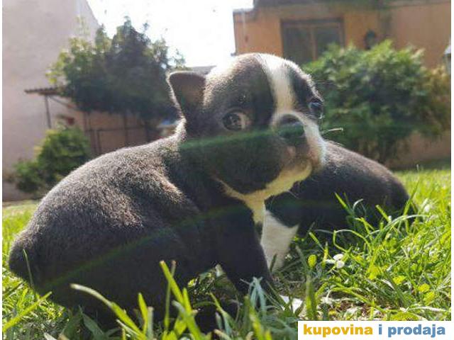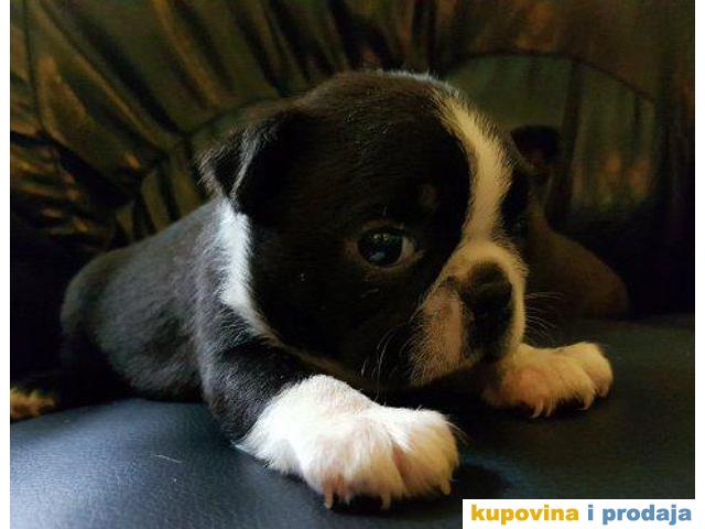 Na prodaju stenci bostonskog terijera muskog pola. Vakcinisani i ocisceni od parazita. Prodaju se sa ili bez papira.