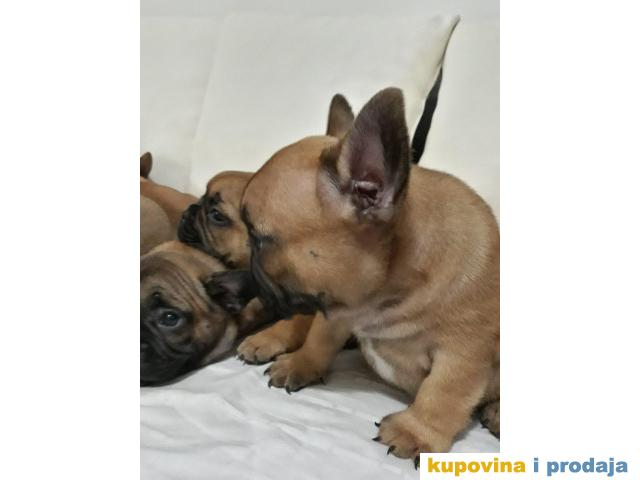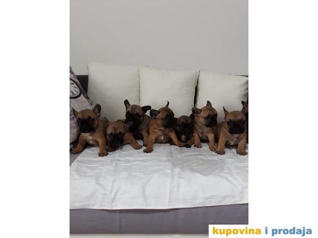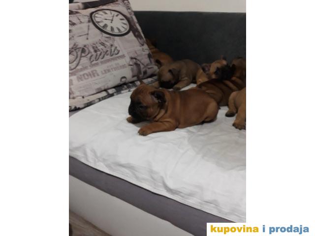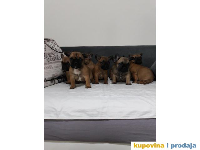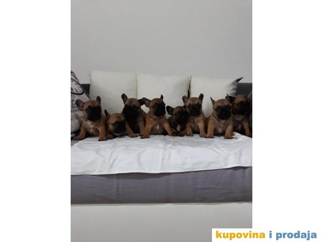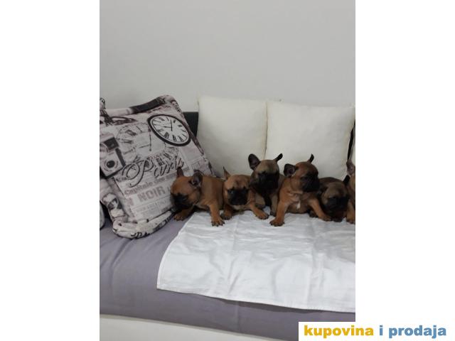 Na prodaju štenci francuskog buldoga stari 5 nedelja.Uponudi 4 mužijaka i 4 ženkice .Stenci su redovno čišćeni od parazita. U toku su rezervacije a mogućnost preuzimanja tek posle 7 nedelje starosti.
