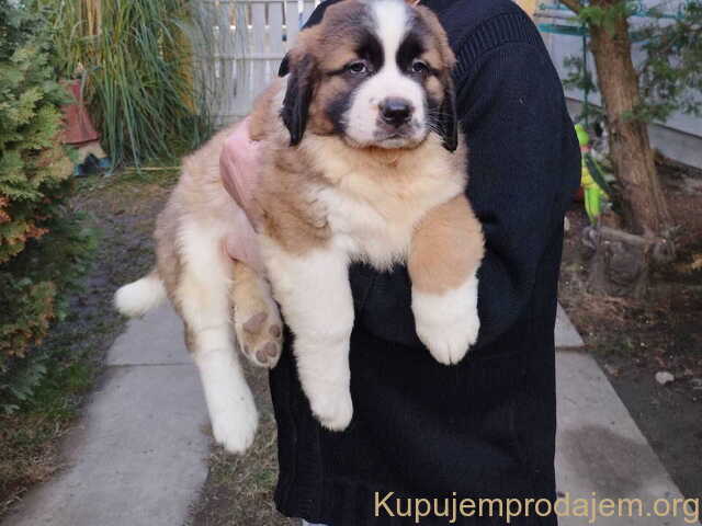 Štenci MOSKOVSKOG čuvara, 4 muška i 1 ženka, očišćeni od parazita, vakcinisani! Stari 8 nedelja, sa pedigreom, traže novi dom! Odneti se može sa 12 nedelja! Za više informacija pozvati Tel/Viber: +381628178404 Laslo, Senta