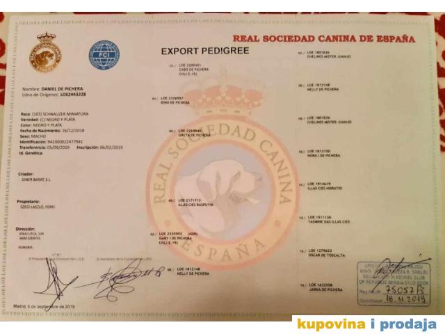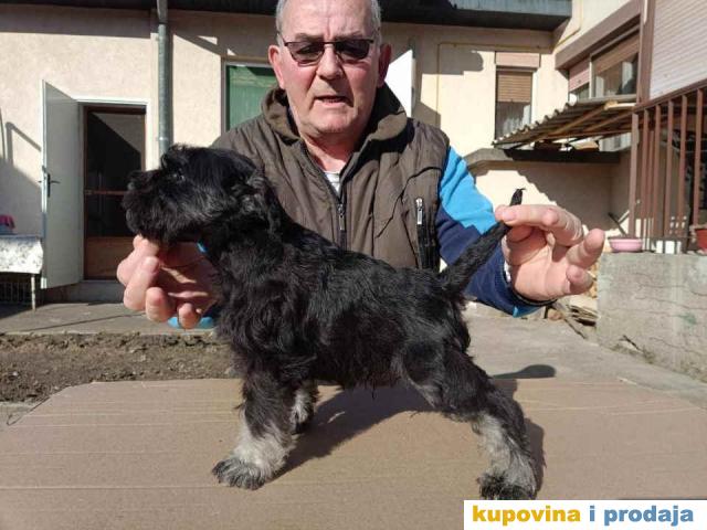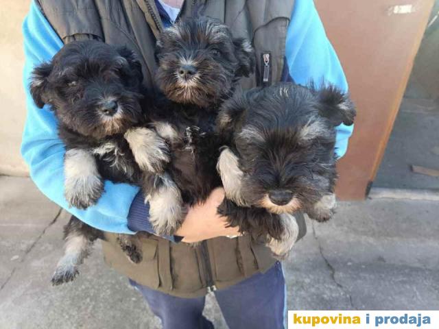 Patuljasti ŠNAUCERI, crnosrebrne boje, osam nedelja stari, vakcinisani i ocisceni. Od oca Daniel de Pichera uvoz iz Spanije i majk Kobra Pachino. Odlicni sa dobrom naravi, stenci su izuzetno lepi sa oostrom dlakom i temperamentom