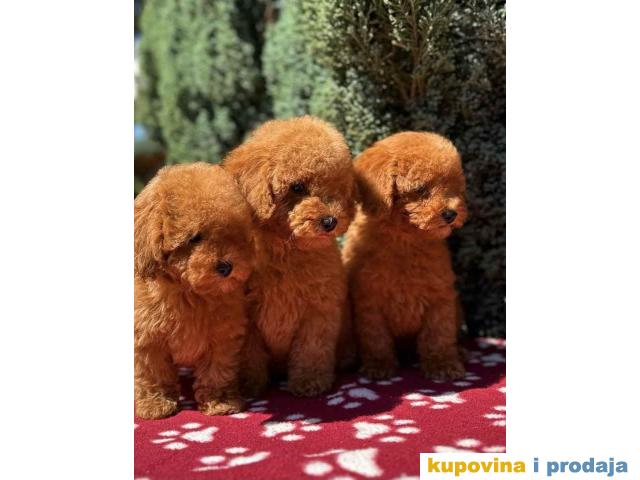 Toy crvene pudle Crvene Pudle od crvenih roditelja, odgajane u kućnim uslovima. Primili vakcinu 3 puta čišćeni od parazita. Sve uz nadzor veterinara. Poseduju sve dokumente. Slobodni dečak i devojčica. Moguća izrada pasoša mikročip Slanje u inostranstvo. Miloš Beograd Viber,whatsapp. +38162562915