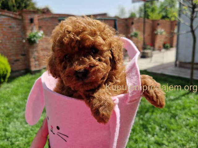 TOY crvene pudle Odgajivacnica Hopy queen poodle predstavlja batu i seku toy crvenih pudli. Bebe su vise puta tretirane protiv parazita, vakcinisane prema uzrastu, odgajane u kucnim uslovima i potpuno socijalizovane. Naucene da obavljaju nuzdu na pelenicu, samostalno jedu granulice, odvojeni od mame. Uz bebe dobijate kompletnu dokumentaciju, kao i osnovne stvarcice za sam dolazak u novu porodicu, od cinijica, podmetaca za nuzdu, hrane, igrackice. Oba roditelja su u nasem vlasnistvu. Moguca je dostava u zemlji i inostranstvu. Nase sapice se mogu sresti sirom sveta,i nasa misija je srecna sapica u srecnom domu. Za vise informacija, budite slobodni da nas kontaktirate Tel/Viber:+381(0)62216269 Jovana, Novi Sad