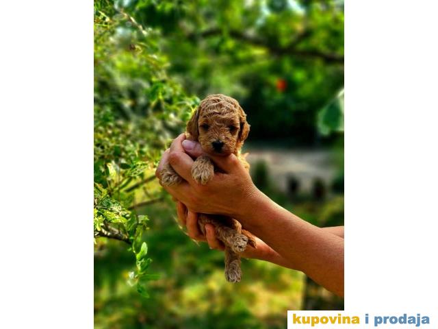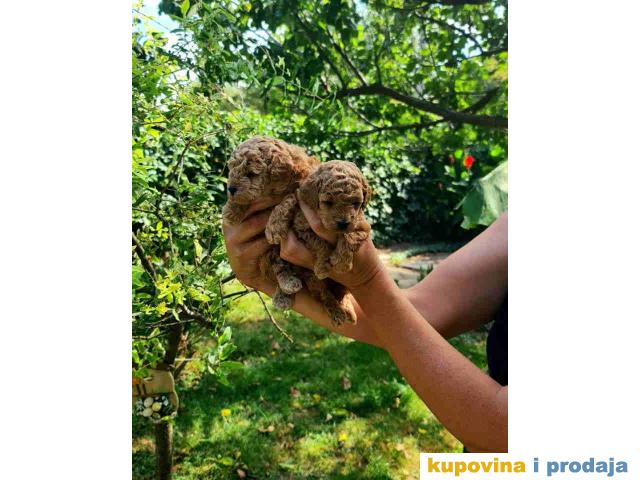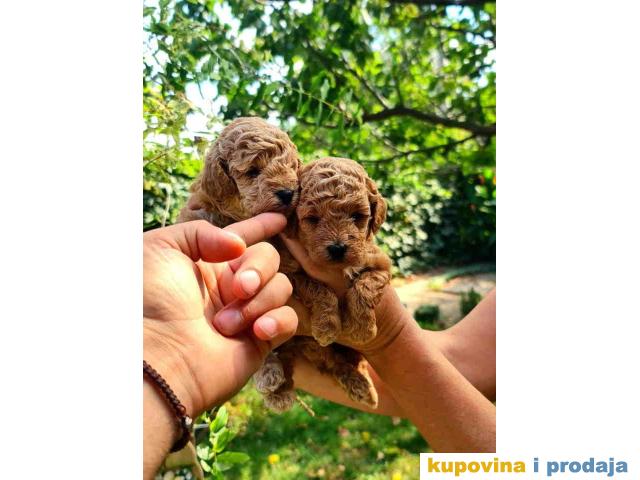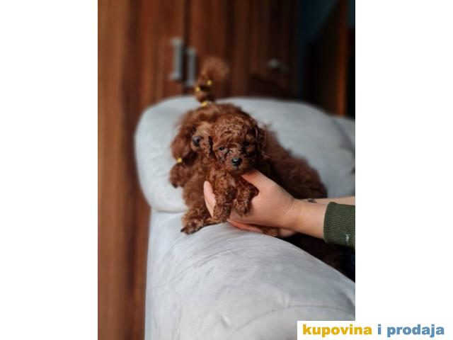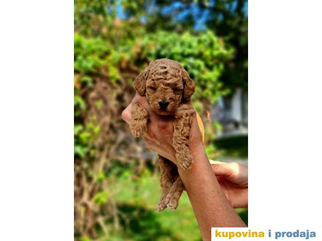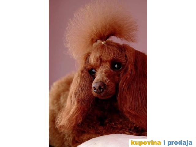 Štenci pudle u aprikot (svetlocrvenoj) i u tamnocrvenoj boji. Roditelji u našem vlasništvu, na poslednjim slikama.