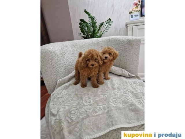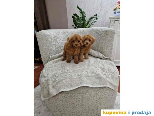 Toy pudle, stenci sa slika spremni za preuzimanje. Vakcinisani su i ocisceni od parazita. Odvojeni su od majke i nauceni da jedu granulice. Nauceni na pelenicu. Malog su rasta, prelepih glavica. Jako su pametni i brzo uce, ne linjaju se i nemaju neprijatnih mirisa. Cena: 400€ Za vise informacija pozovite Tel/Viber: +381(0)637135821 Svetlana, Novi Sad