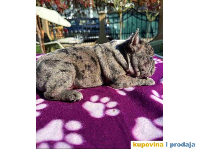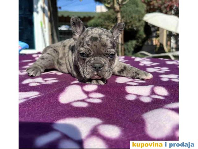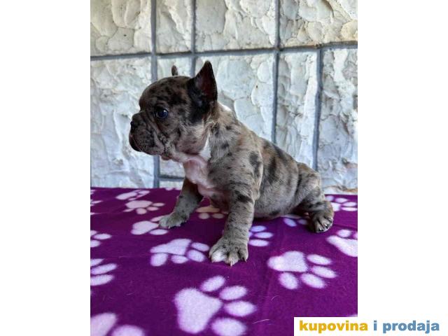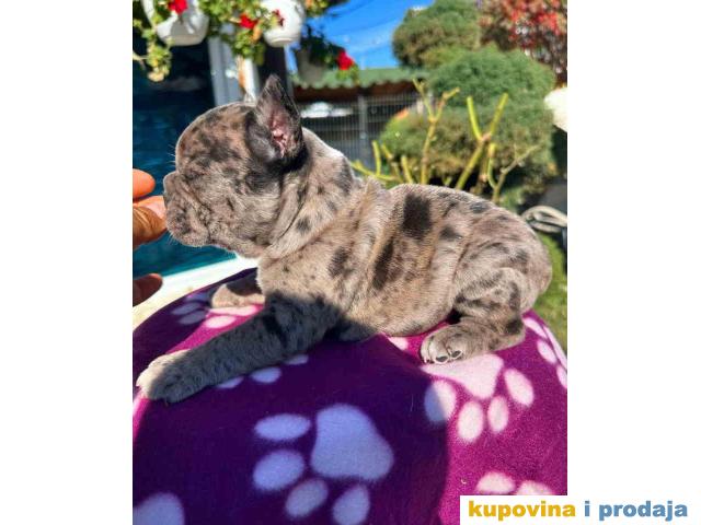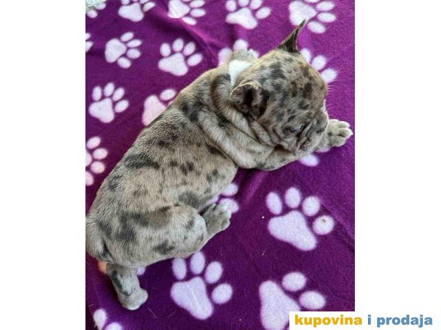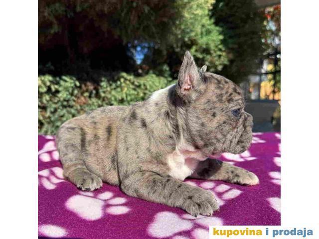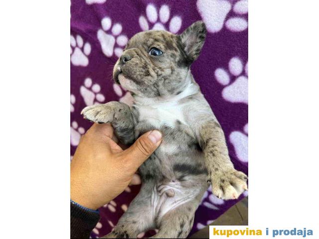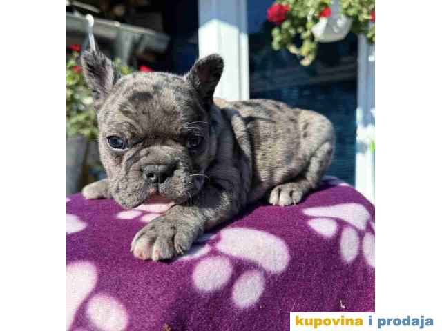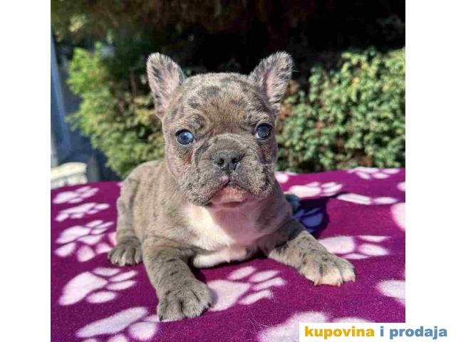 U ponudi štene francuskog buldoga. Star dva meseca, vakcinisan i očišćen od parazita. Spreman za preuzimanje. Pas poseduje zdravstveni karton od strane veterinara da je pas potpuno zdrav i da je primio prvu vakcinu. Po želji kupaca moguca izrada SRB i EU pasosa takodje vršimo dostavu po celoj SRB i EU.