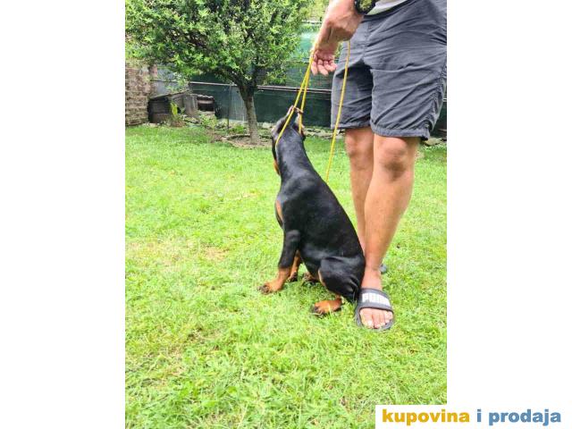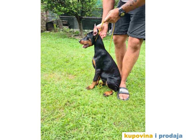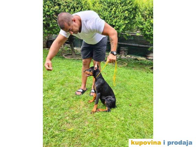 Zenka Dobermana kupirana, stara 3,5 meseca spremna za novi dom, sva prateća dokumentacija ide uz stene moze dostava na kucnu adresu radimo i dostavu za E U
