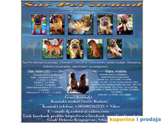 Šar Pei štenad na prodaju. Oštenjeni 7.04.2019. Četiri ženke i jedan mužjak. Štenad su