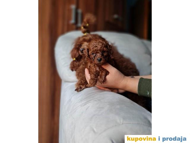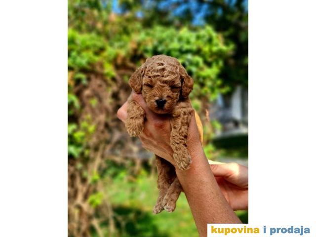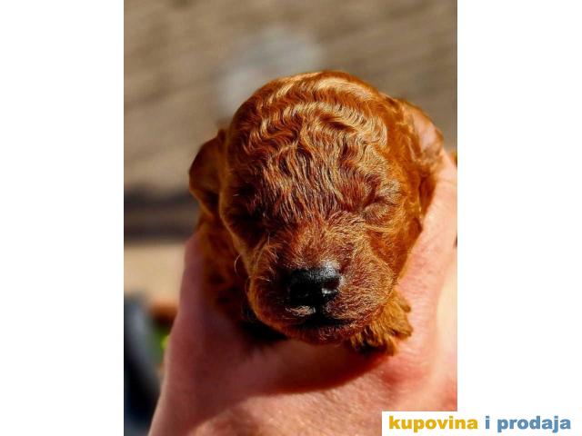 Štenci pudle u aprikot (svetlocrvenoj) i u tamnocrvenoj boji. Roditelji u našem vlasništvu, na poslednjim slikama.