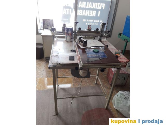 Prodajem kompletnu opremu za sito stampu. U odlicnom stanju, cena po dogovoru. Moze se odmah krenuti sa radom. Masine mogu da se rasklope pri transportu. Za vise informacija i slika pozvati. 0646339922
