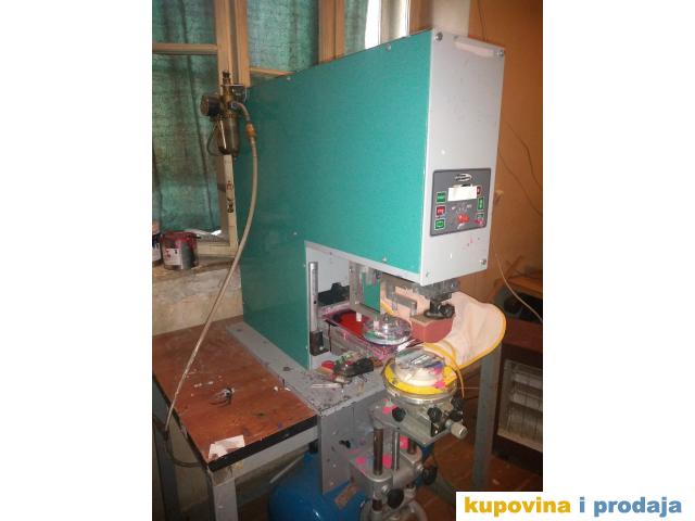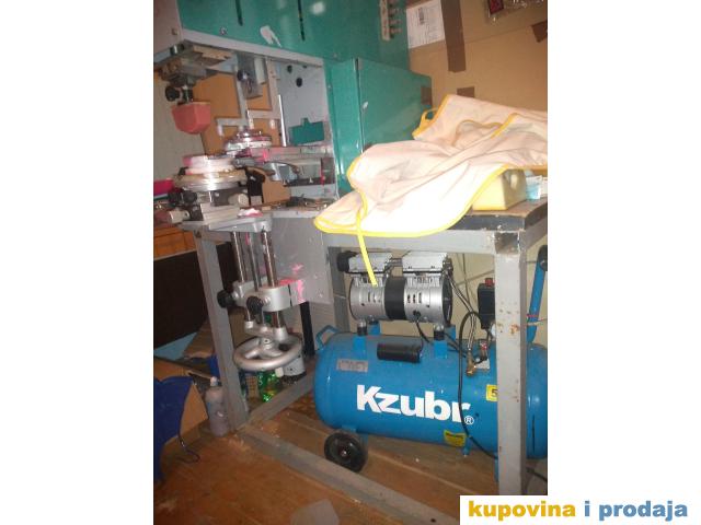 Uz tampon ide i skoro nov nečujni kompresor 50 litara, UV lampa za razvijanje klišea, dosta nijansi boja i tampon guma.