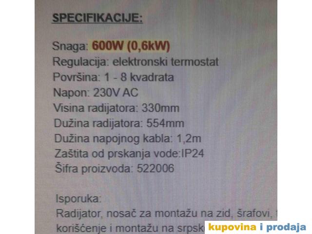 Originalni norveški radijatori korišćeni samo 4 meseca. Ispravni i još u garanciji (2 godine). Imam ih 5 komada , 2kom od 1,2KW, 2 kom od 1 KW i jedan za kupatilo od 0,6KW.