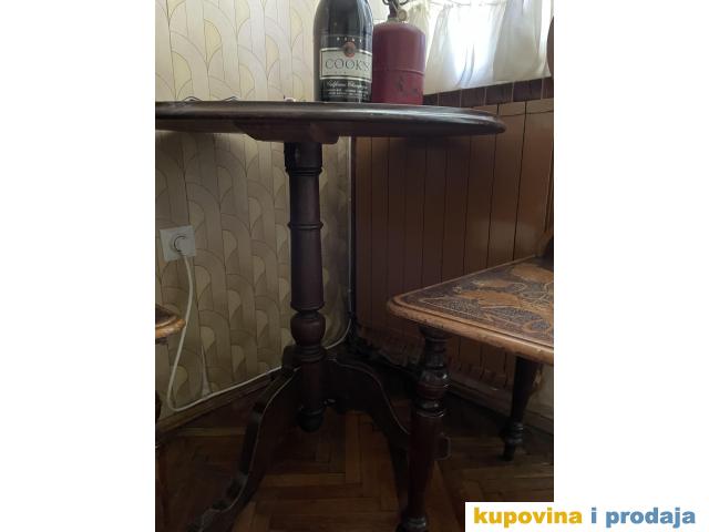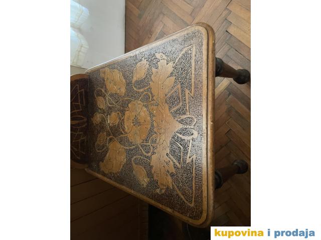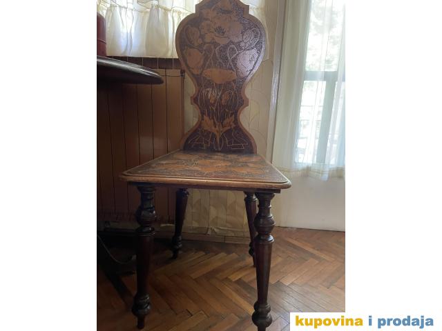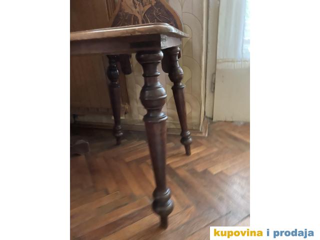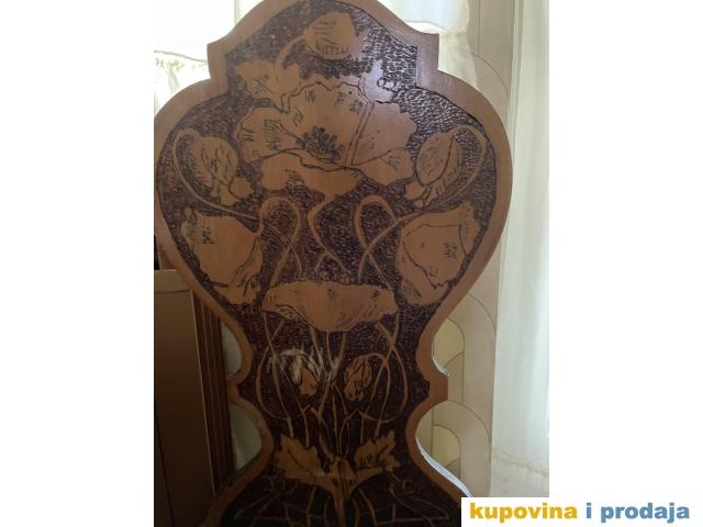 Tri fino rezbarene stolice są pratecim stołom. Pogodne za manju trpezariju ili entre. Potrebna je manja restauracija jer je jedna stolica ostecena. Kontakt iskljucivo preko mejla.