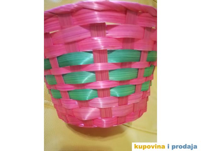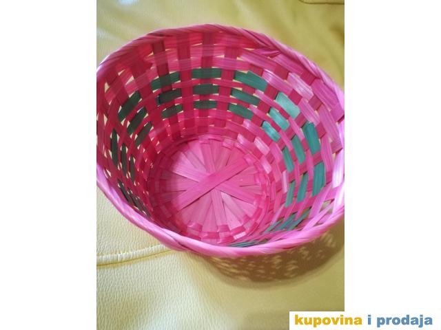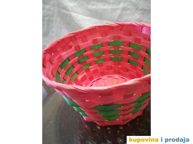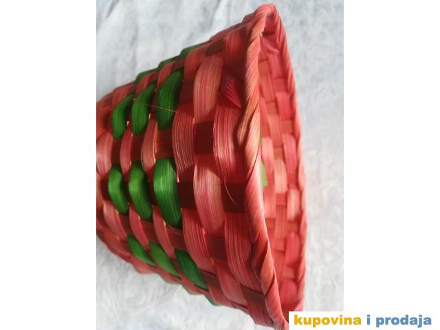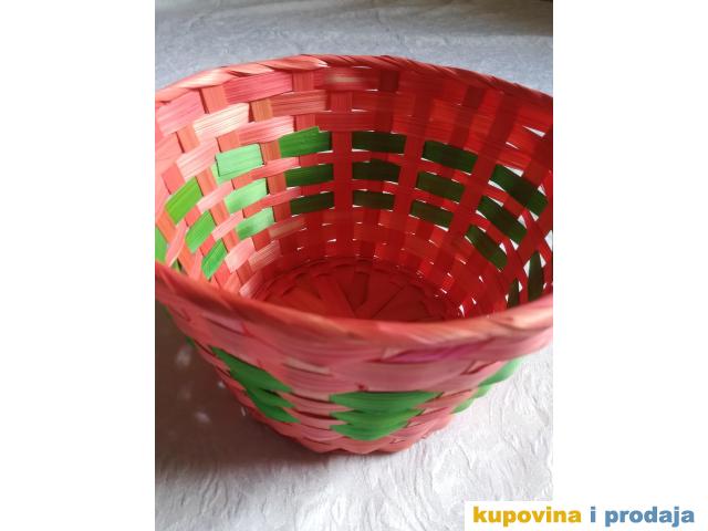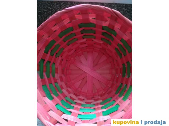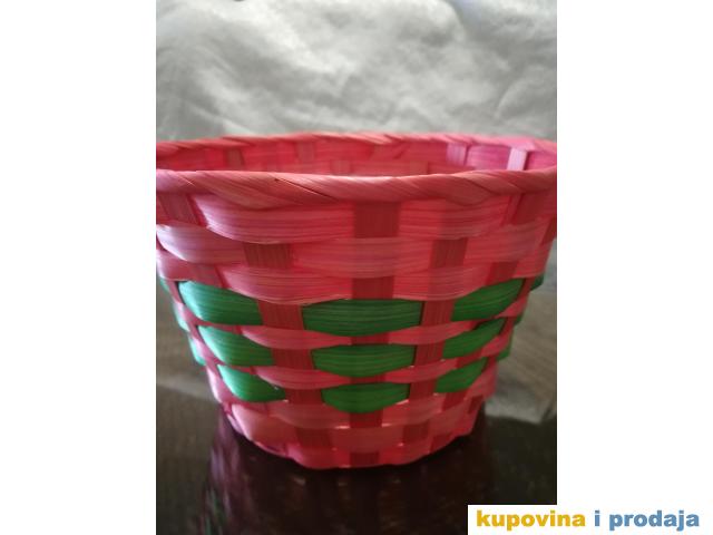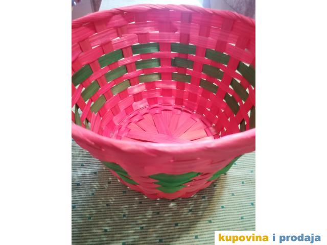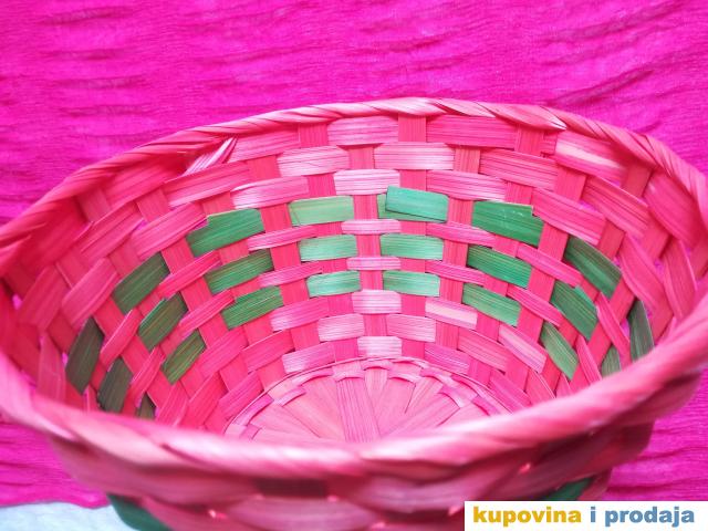 Korpa svetlo crvena za razne sitnice ili dekoraciju, visina 13 cm, fi 20 cm, dno fi 14 cm. Kao nova, nije korišćena.
