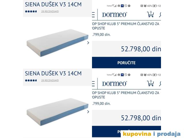 Na prodaju potpuno nov Dormeo Siena dušek dimenzije 160x200 sa debljinom jezgra 15cm. Dušek je samo otpakovan ali nije korišćen jer nam dimenzije ne odgovaraju.