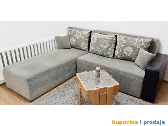 UGAONA GARNITURA NA RAZVLACENJE SA ODLAGACEM ZA POSTELJINU U DOBRO OCUVANOM STANJU.CENA NIJE FIKSNA