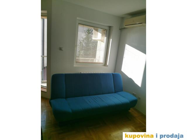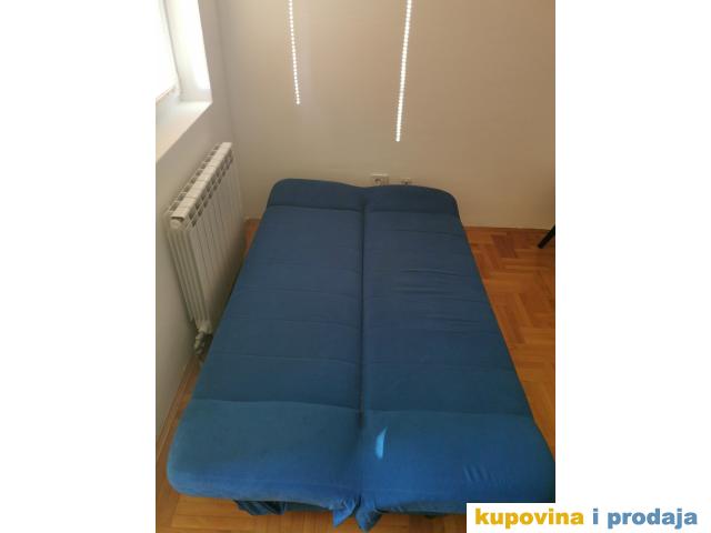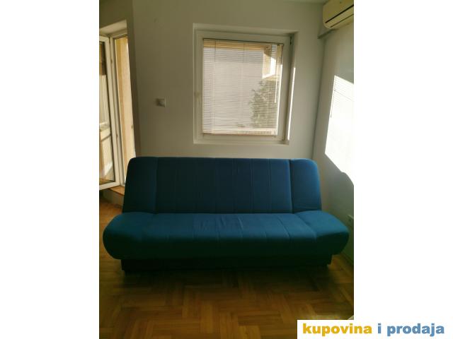 Plavi kauč na rasklapanje. Koršćen. Dimenzije 2m x 120cm kad je razvučen. Kauč se može preuzeti u Mirijevu