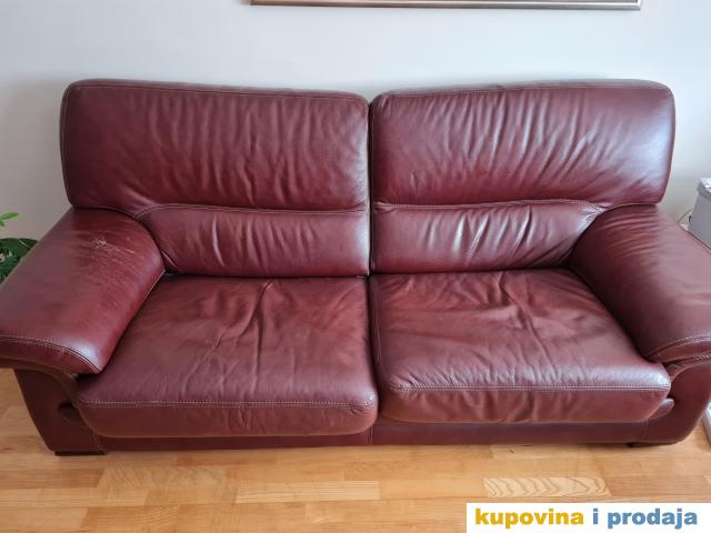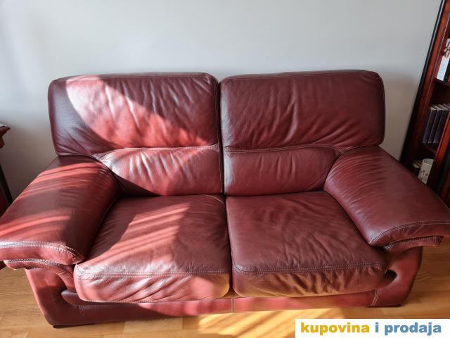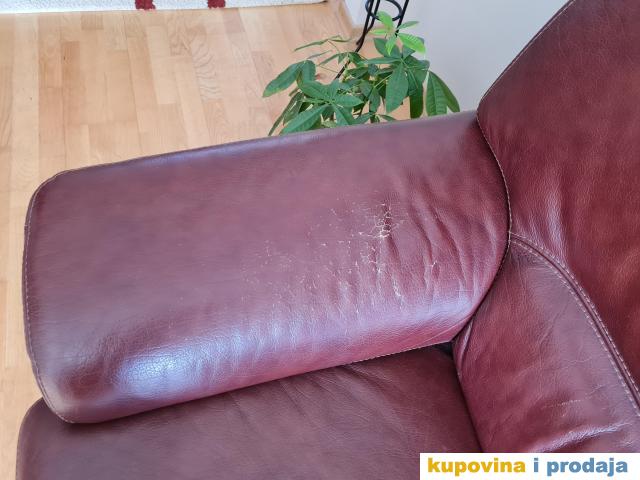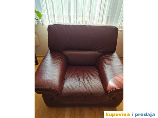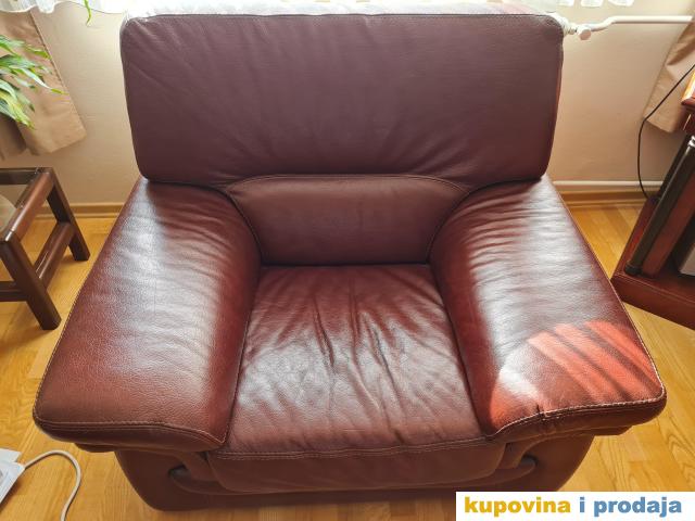 Kožni trosed sa mehanizmom, dvosed i fotelja