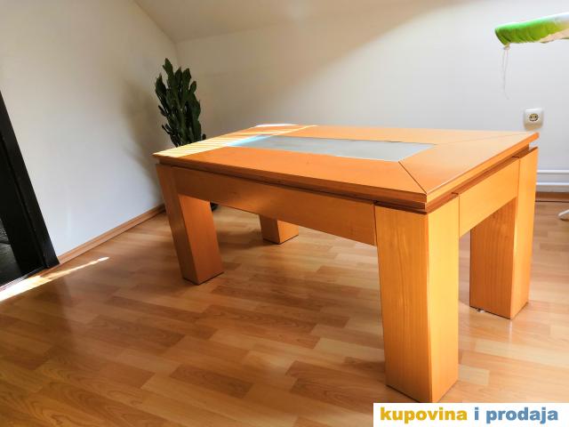 -Sto sa devet stolica (može da se razvuače) dimenzije 149 (247) X 79,5 X 75 cm, -Komoda sa četiri fioke i četvoro vrata dimenzije 198 X 53 X 95 cm, -Vitrina sekreter dimenzije 80 X 41 X 180 cm Komplet je dobro očuvan star oko 50 godina. Cena 1900 evra Kontakt: 060/7141913 Beograd