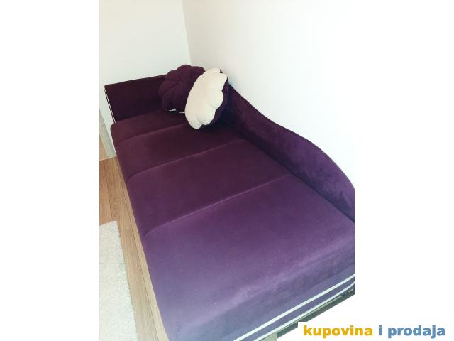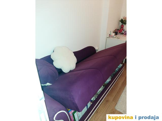 Singl krevet sa prostorom za odlaganje posteljine i dušekom od gustog sundjera. Krevet kupljen u Matisu. Korišćen u dečijoj sobi oko 5 godina.