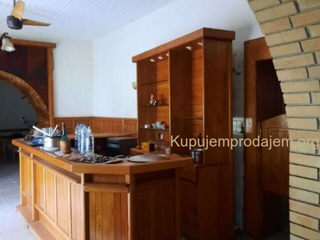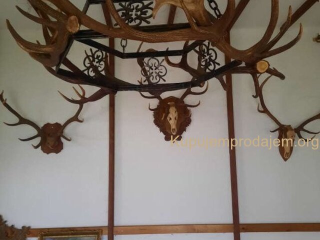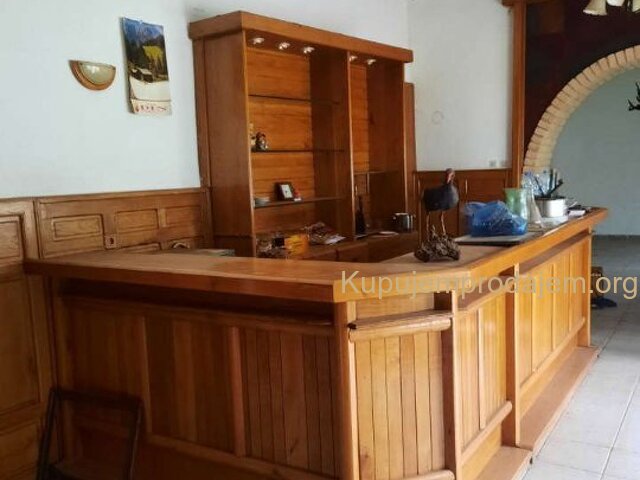 Na prodaju šank od hrastovine (395cm x 225 cm); vitrina (210cm x 260cm visina); rashladna vitrina i luster od kovanog gvožđa i rogova, prečnika 160cm (težine preko 50 kg).