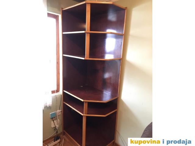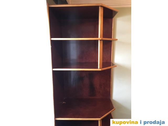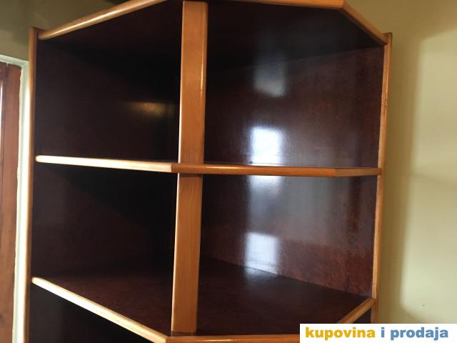 Komoda sa policama od univera (tamni pticji javor) svartnovan sa bukovim masivom.Dimenzije visina 220,sirina 80,dubina 58.Pogodna je za mali prostor. Cena dogovor