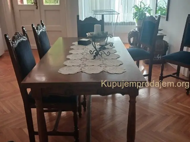 -Sto sa devet stolica (može da se razvuače) dimenzije 149 (247) X 79,5 X 75 cm,