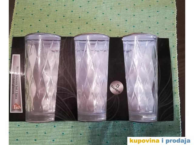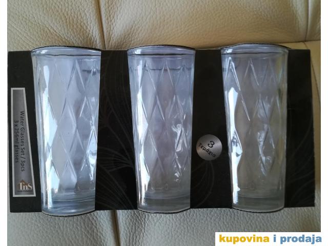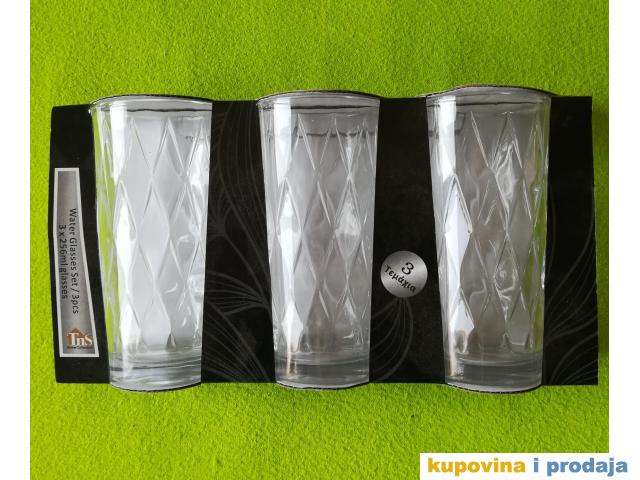 Čaše nove 3 kom, 256 ml. Sve tri za 350 din. Visina 13 cm.