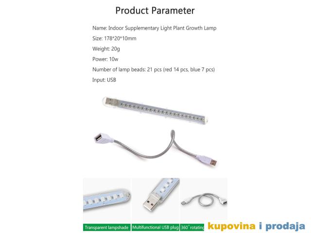 Ovu mini lampu za biljke napaja računar ili pover bank sa USB konektorom, jednostavna je za korišćenje i veoma ekonomična.