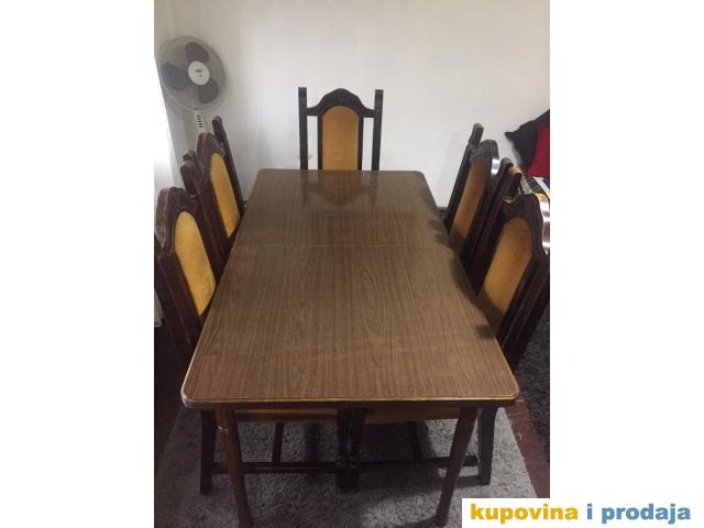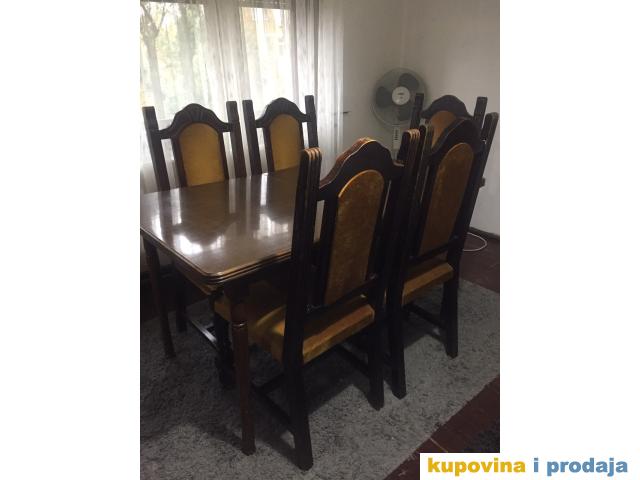 Sto je spreman za korišćenje, od punog drveta koji se na stedini razvlači, tako da može max sedeti 12 osoba. Pogodan za manji prostor, ali i za proslave ređendana, slava. Lako se održava, a cena je 100e.