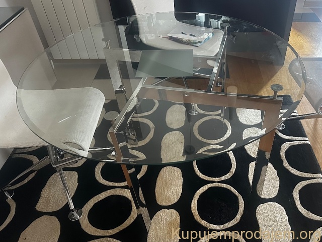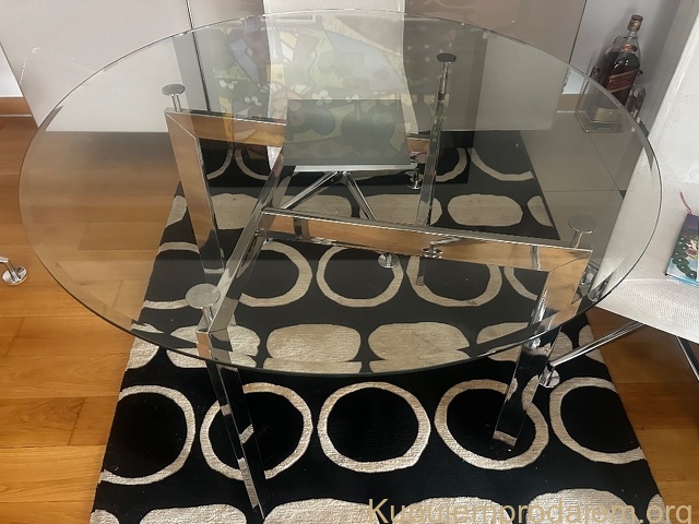 Veoma ocuvan sto za rucavanje sa bazom od prohroma i staklenim delo.