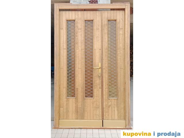 Prodajem dobro očuvana drvena ulazna dvokrilna vrata dimenzije 215x130 cm