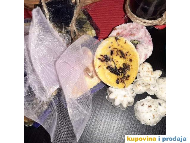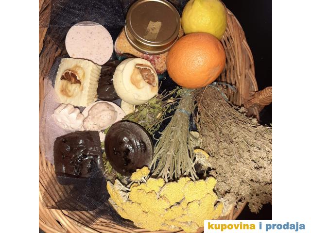 Sapuni izrađeni na bazi kokosovog, hladno ceđeno maslinovo i palmino ulje i, dodatak eterična ulja i biljke