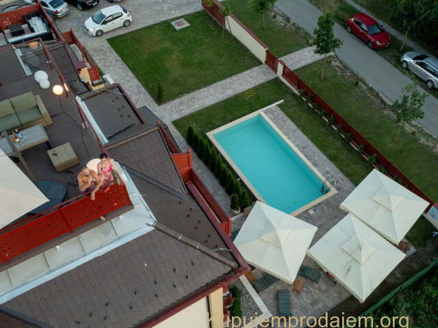 Apartmanski kompleks Jezerska residence Palic Dobro došli na nov luksuzni i moderan apartmanski kompleks na Paliću. Nalazimo se na samo 50m od jezera I objekat je opremljen sa otvorenim (sezonskim) bazenom, đakuzi kadom, letnjom terasom I parkingom. Najluksuzniji deo ponude je Apartman 128 sa đakuzi kadom na prelepoj terasi i sa panoramnim pogledom na jezero Palić. Apartman je opremljen po najsavremenijim i najluksuznijim standardima za hotelsku industriju. Spavaća soba sa king size bračnim krevetom, veliki dnevni boravak sa ugaonom garniturom, potpuno opremljena kuhinja i terasa od 100m2 opremljena sa đakuzi kadom i setom za sedenje i sunčanje. U apartmanu može boraviti do četiri odrasle osobe ili dve odrasle osobe i dvoje dece. Jedno je sigurno: uživanje, osećaj hedonizma i luksuza su zagarantovani. Inst. jezerska_residence.palic Čekamo vas Rezervacija: Nemanja Palić, Palić 061/5000-489 Pročitajte više