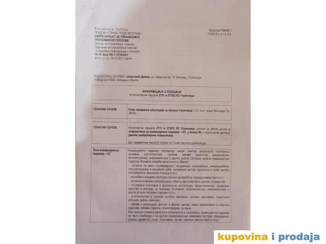"Plac 97 ari, industriska komercijalna zona, na putu Dobanovci-Batajnica u Ugrinovcima opština Zemun. Plac je frontalno širok oko 33m i izlazi na Zemunsku ulicu, tačnije preko puta broja 33. Parcela je pravilnog četvrtastog oblika. Katastarsak opština Ugrinovci parcele 2731 i 2733/2