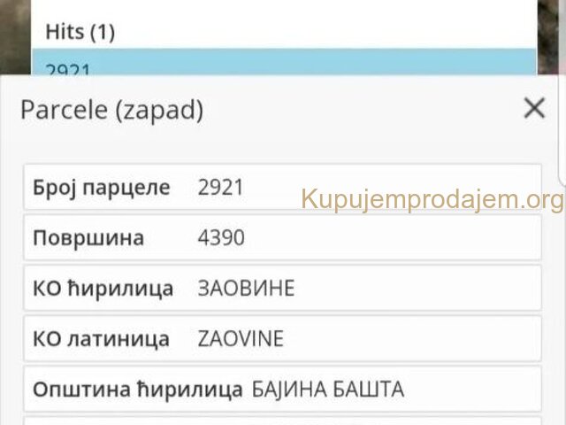 Prodajem Plac kod Zaovinskog jezera od 43,9 a, Broj parcele 2921 KO Zaovine. Udaljeno od brane 4 km. Ima lep pogled sa nekih 900 m n. v. ka jezeru, apsolutni mir tišina i čist vazduh. Postoji mogućnost da se izparceliše u više placeva.