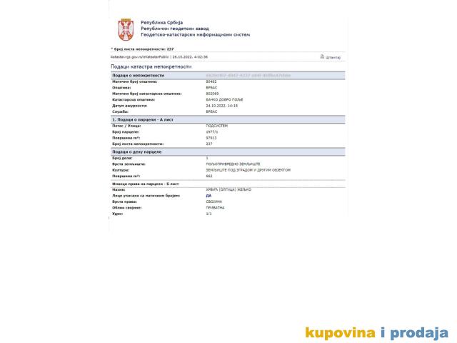 Uknjiženo 1/1 na vlasnika bez tereta.