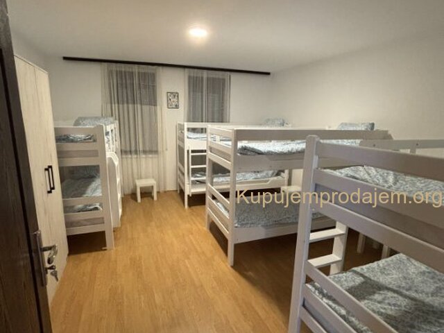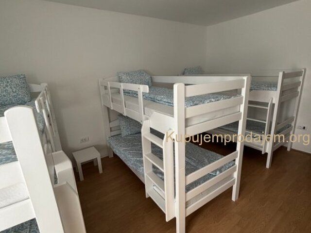 Izdavanje kuce u Dobanovcima za radnike kapaciteta 54 kreveta. Kuca sadrzi 8 soba sa razlicitim brojem kreveta( od 2 do 12) Sadrzi zajednicku samousluznu kuhinju Kuptilo je sa 11 umivaonika, tuš kabina i wc-a, tu si i Masine za veš i sušenje. Prostrano dvoriste sa pokrivenom terasom pogodno za pusace. U cenu smestaja uracunati su troskovi grejanja struje i interneta. Cena po osobi je 180 evra mesecno.Avansno plaćanje na mesečnom nivou. U slucaju zakupa cele kuce na godinu dve cena ide 20% manje. Informacije na broj 0641146909 i 063420006