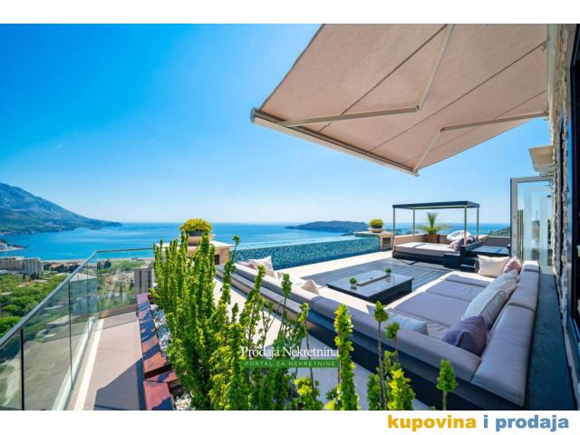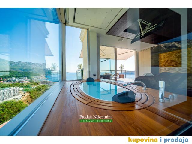 Ovaj dvoetažni penthouse se nalazi na jedanaestom spratu prelijepe zgrade u Bečićima sa samostalnim ulazom iz lifta i ima ukupnu površinu od 280 kvadratnih metara. Rezidencija se može pohvaliti direktnim I panoramskim pogledom na more od 360 stepeni i sa nestvarnim pogledom na zalaske sunca.