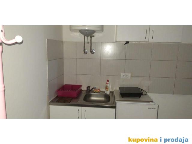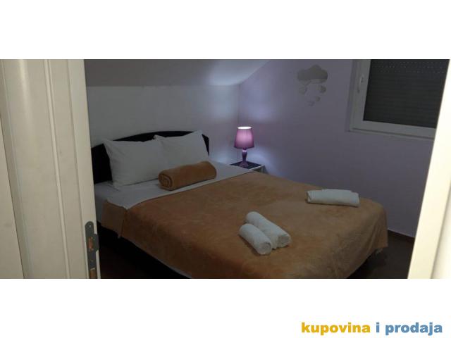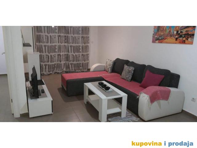 Spavaća soba sa francuskim ležajem. Dnevna soba sa ugaonom garniturom na razvlačenje.