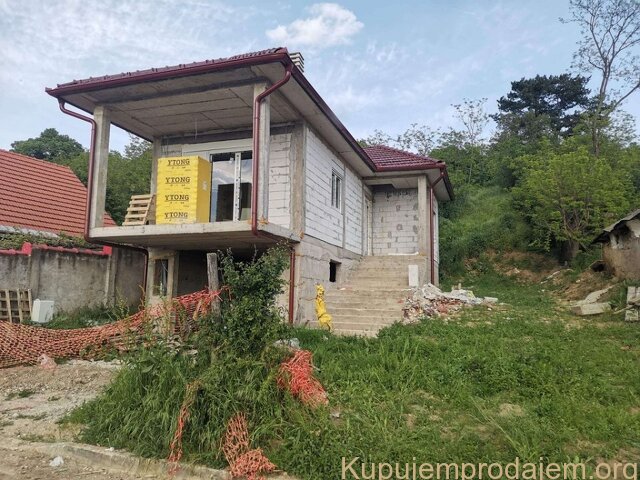 Kuca u izgradnji sa svim dozvolama. Uknjizeno 1/1. Visoko prizemlje (stambeni deo) neto 55m2 i garaza (suteren) neto povrsine 22m2.