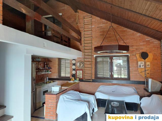 Plac 21 ar,kuca 75m2 na sprat,gradska voda,bunarska voda,struja,gas pored placa,miran komsiluk bez domacih zivotinja,kamin,debljina zidova 40cm,dve terase,zidani rostilj,pomocna kuca sa supom,dnevni boravka open space,na spratu jedna spavaca soba i galerija,plac u blagom padu,nije zaklonjen pogled,