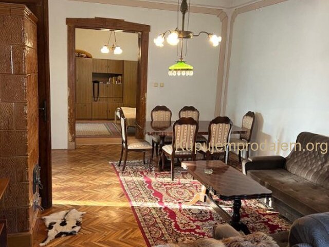 Podovi su parket i pločice, a stolarija je drvena.