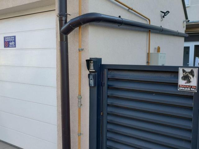 Garaža je sa keramičkim pločicama i automatskim vratima.