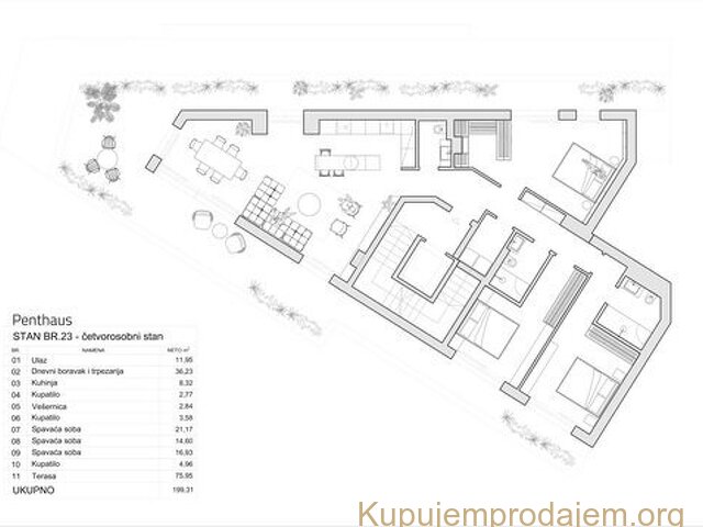 U okviru Prime Square objekta u ponudi je Penthaus(četvorosobni) od 199,31m2 po ceni od 1.085.243 € (4.950€/m2+pdv) na povučenom(VII) spratu