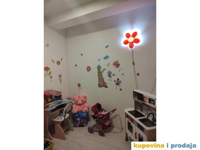 Stan prostran,veoma svetao,sa centralnim grejanjem,PVC stolarijom,zatvorena terasa,sigurnosnim ulaznim vratima,interfon,video nadzor,sobe klimatizovane,laminat u svim prostorijama,trofazna instalacija,kablovska,Wi-Fi,fiksni telefon,led rasveta u svim prostorijama.