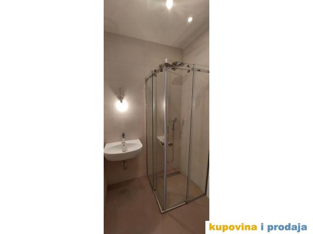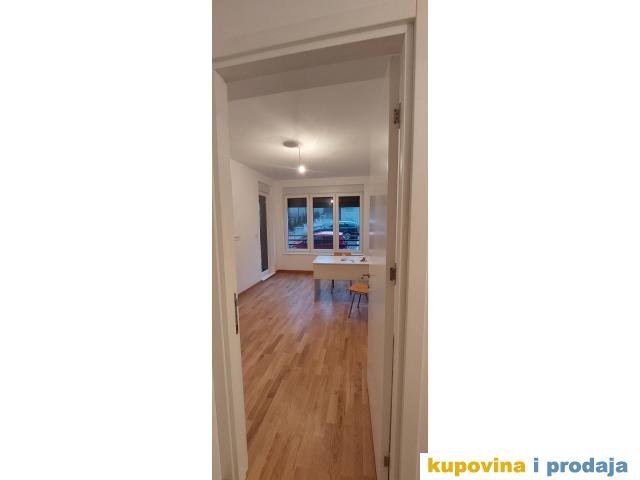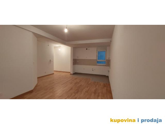 U stanu je etazno grejanje, podno (licni kotao), automatske roletne u svim prostorijama, dva kupatila sa prirodnom ventilacijom, dve spavace sobe, veliki denvni boravak as kuhinjom i trpezarijom, terasa povezana sa dnevnim boravkom i glavnom sobom, parking mesto odmah uz sam stan. Stan se nalazi u viskom prizemlju i jedina je stambena jedinica na tom spratu. Zgrada poseduje i lift.
