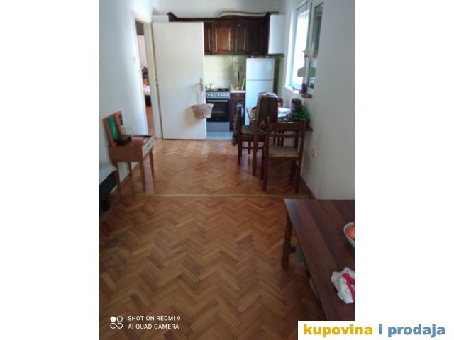 Stan,1.5,  u mirnom delu naselja u kuci sa 6 stanova,izvorno stanje ,odrzavan .Sastoji se od kuhinje sa trpezarijom i dnevnom sobom ,hodnika,ostave ,kupatila sa prirodnom ventilacijom  ,velike spavace sobe i dve terase.Dvostrano orijentisan ,stara gradnja,gradjevinska dozvola… Blizu maxija ,poste,apoteke,autobuskih stanica. Kontakt 064/1231828