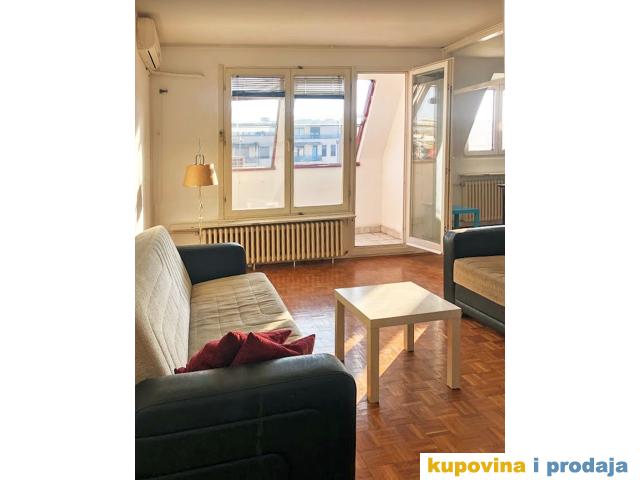 Prelep, svetao i prostran stan na granici Novog Beograda i Zemuna,nadomak Dunavskog keja i starog Merkatora. Dvostrano orjentisan, stan ima dve pokrivene terase s lepim pogledom koje se, po potrebi, mogu zatvoriti. Praktičan raspored sa kuhinjom i trpezarijom u srcu stana, prostranom dnevnom sobom, odvojenim spavaćim delom i dva mokra čvora. Odlična povezanost. Slobodna parking zona oko zgrade.