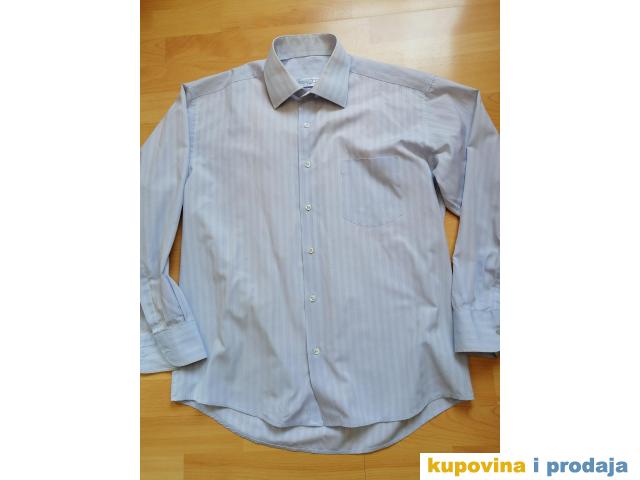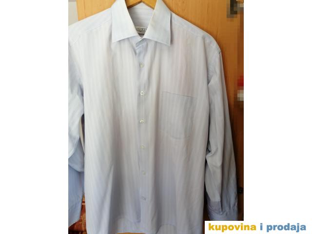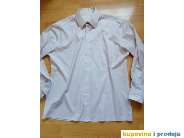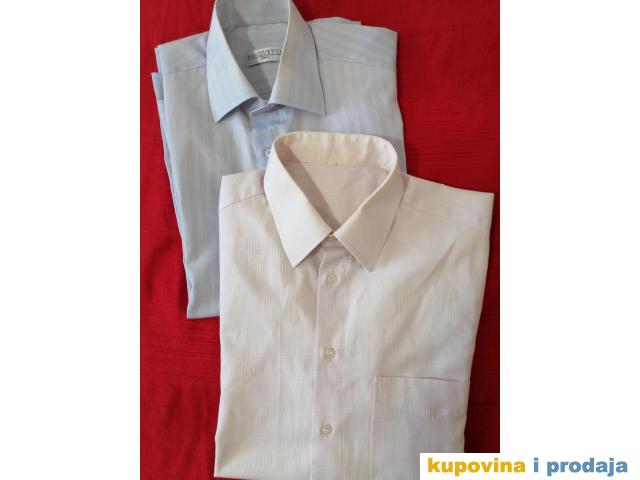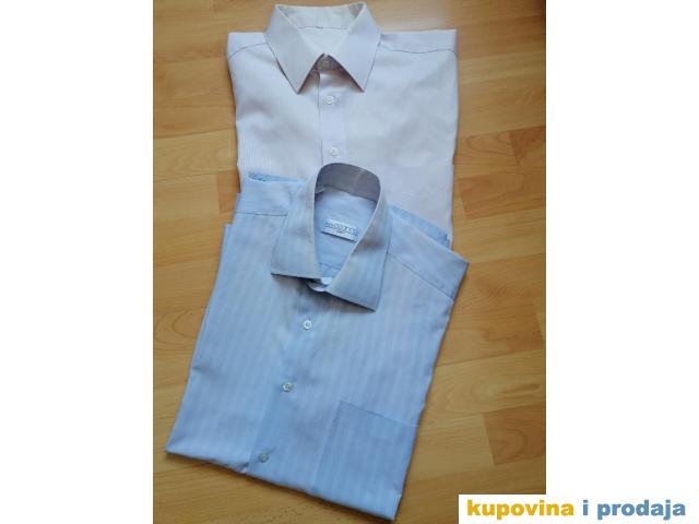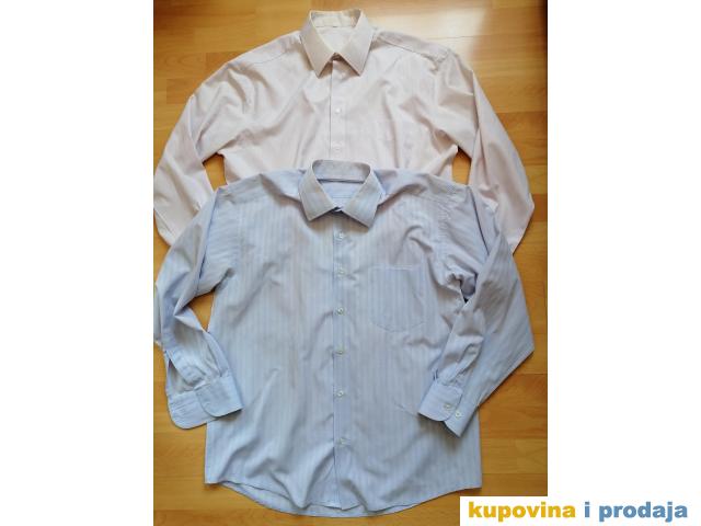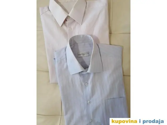 Košulje 2 kom obe za 300 din, dug rukav, vel 38-42, svetlo plava i svetlo roze, obim grudi 104-124, dužina 71-80, dužina rukava 58-65 cm, nošene.